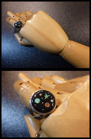 ホーム | Zuni Jewelry > リングナバホ Matthew・Jack インレイ 宇宙モチーフ リング11号