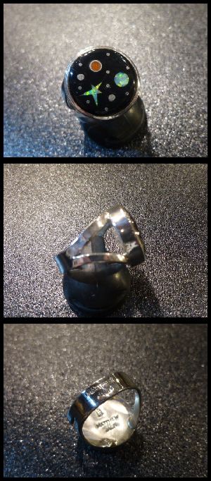 丁寧なインレイワークで宇宙をモチーフにした、ナバホ族のリングになります。