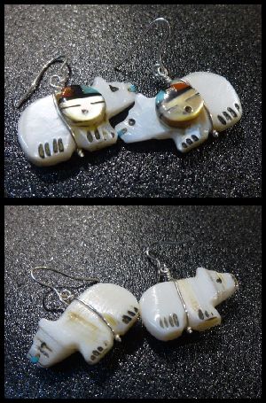 ズニ インレイ サンフェイス×マザーオブパールフェティシュベアー ダングルピアス