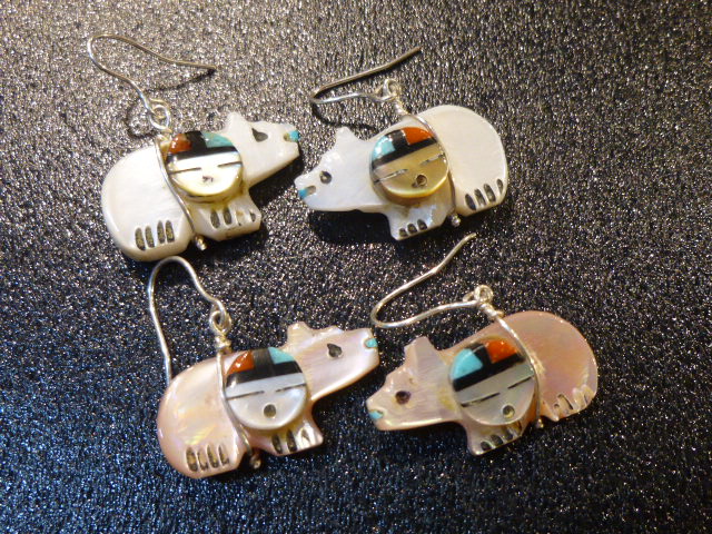 インレイサンフェイス×フェティシュベアーで完成された、ズニ族のぶら下がりピアスになります。