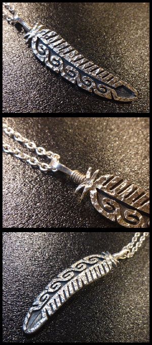 一目でルーベン氏作と分かるオーバレイで完成されたフェザー型のペンダントトップになります。