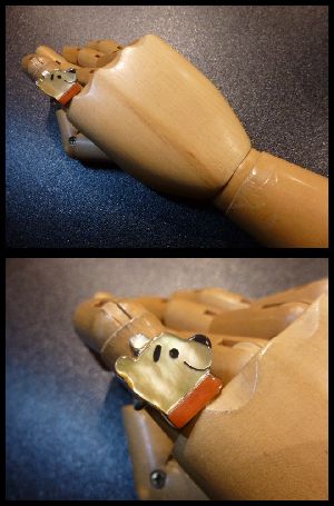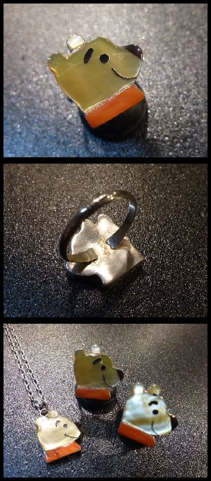 可愛らしいキャラクターがインレイワークされた、ズニ族のリングになります。