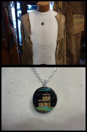 美しいインレイワークが施された、ナバホ族のペンダントトップになります。