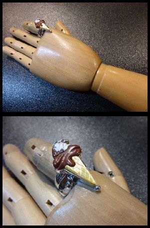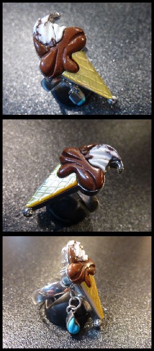 可愛いアイスクリームをモチーフにした、ズニ族のリングになります。