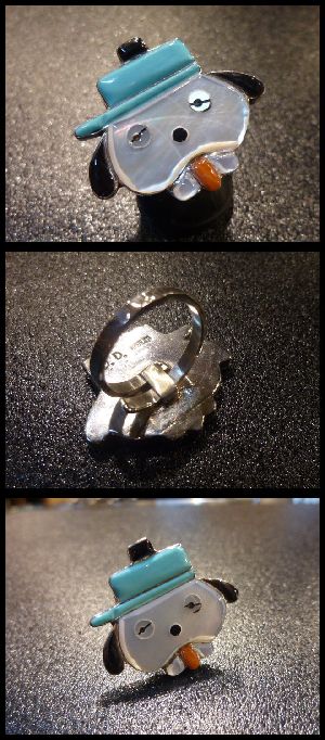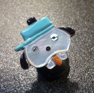 可愛らしいキャラクターをデザインインレイした、ズニ族のリングになります。