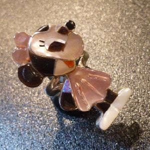 可愛らしいキャラクターがインレイワークされた、ズニ族のリングになります。