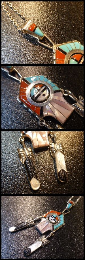 見事なサンフェイスインレイが施された、ズニ族のペンダントトップになります。