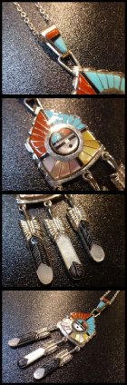 見事なサンフェイスインレイが施された、ズニ族のペンダントトップになります。